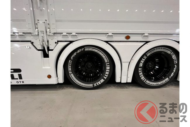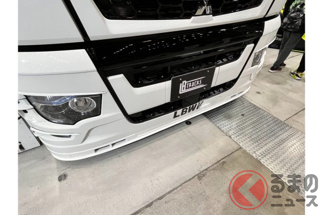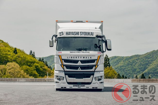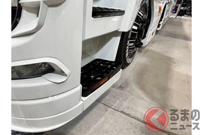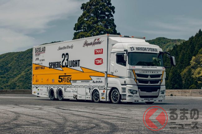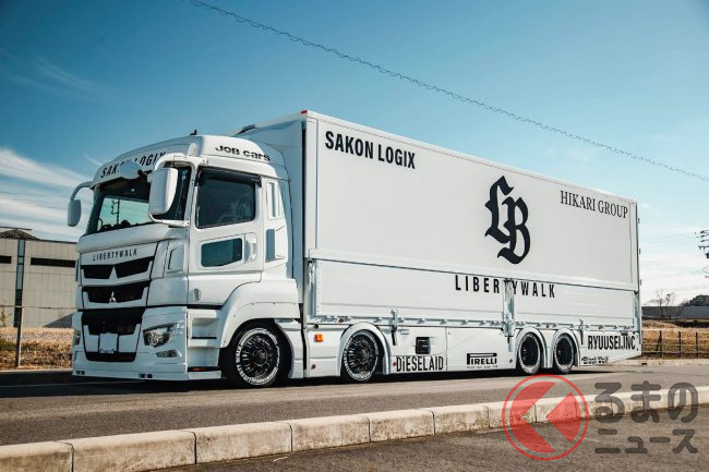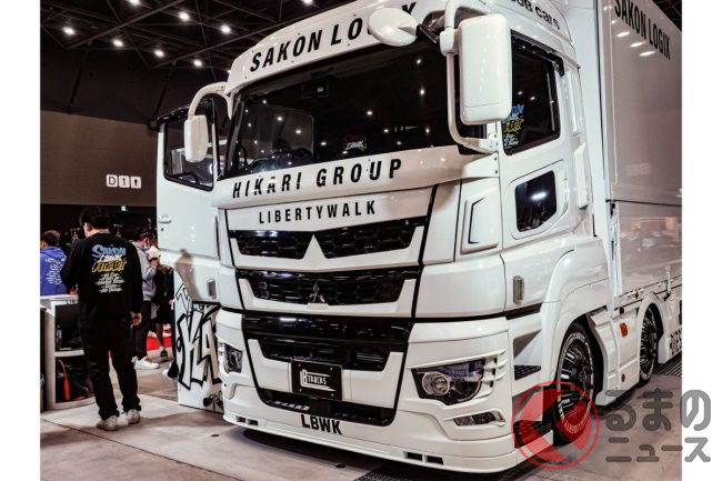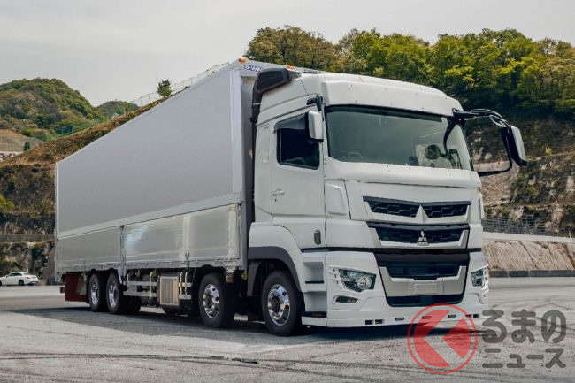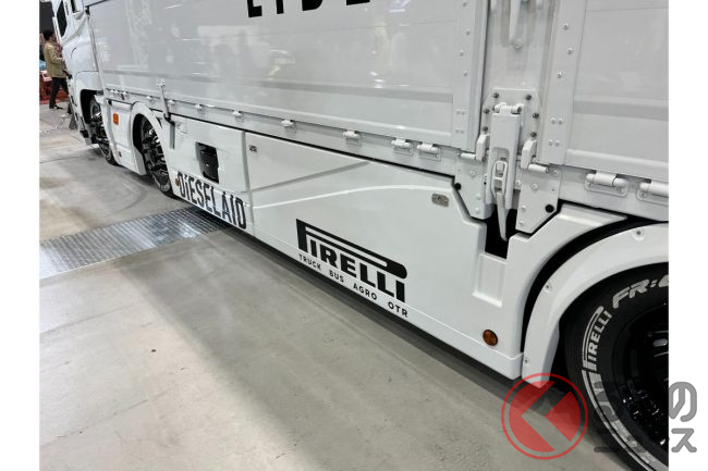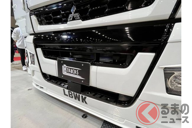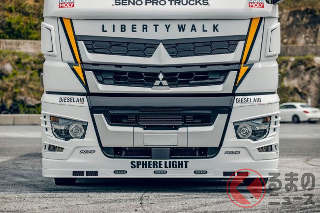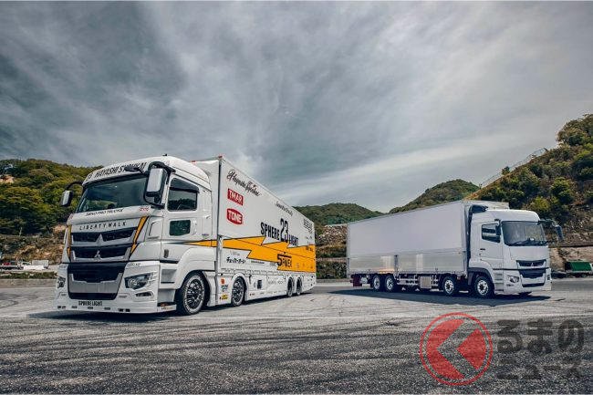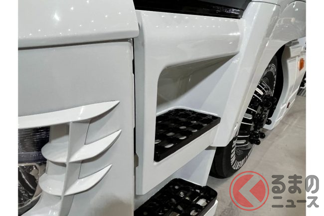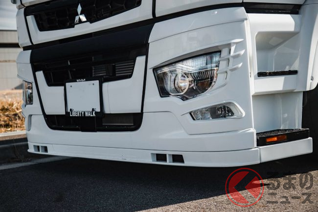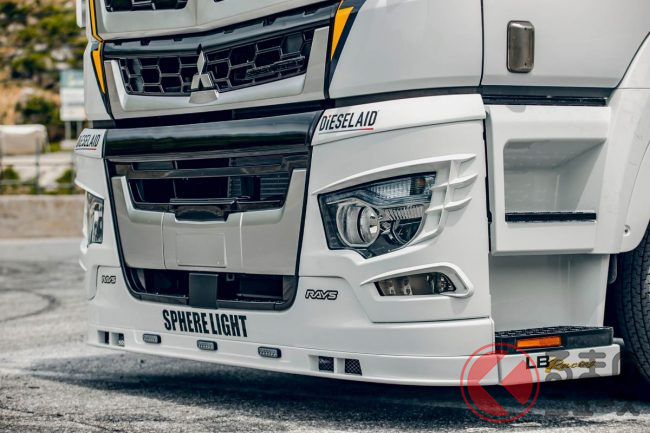 まさかの“地上高ベタベタ”「大型トラック」登場!? ド迫力ワイドフェンダー装備の三菱ふそう「スーパーグレート」がスゴすぎる