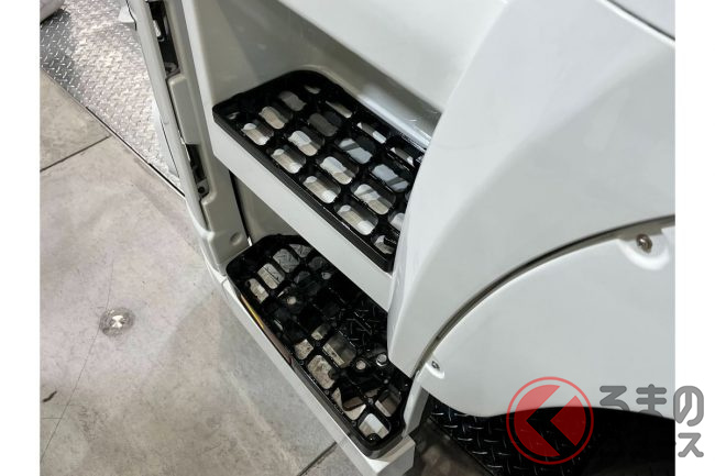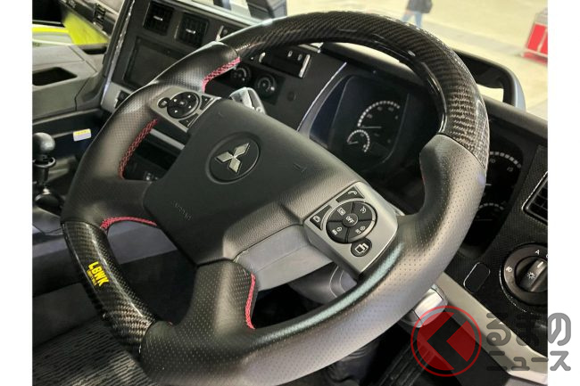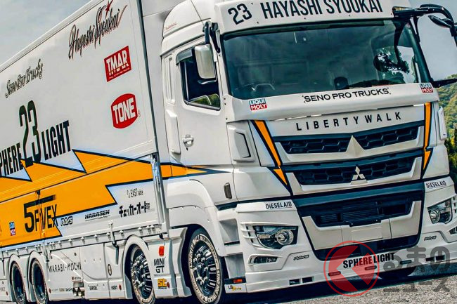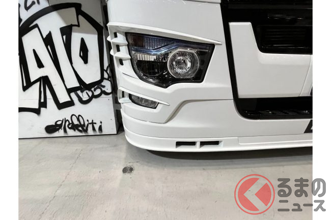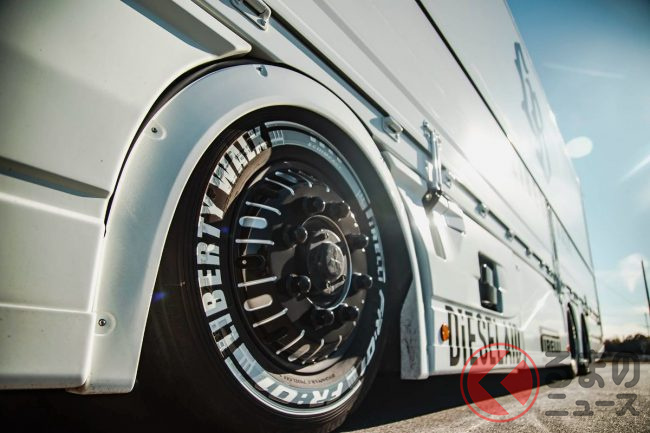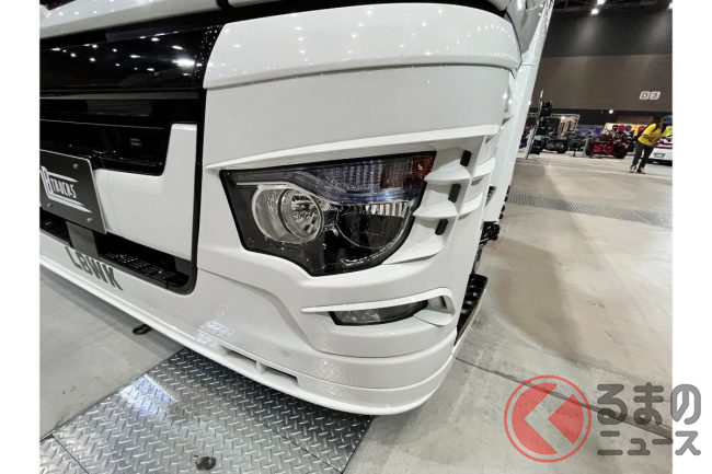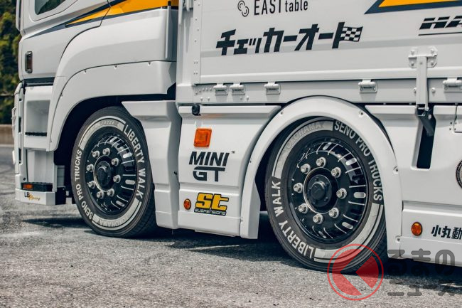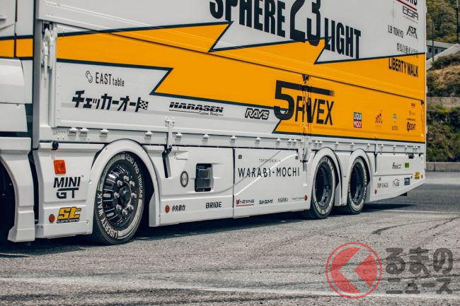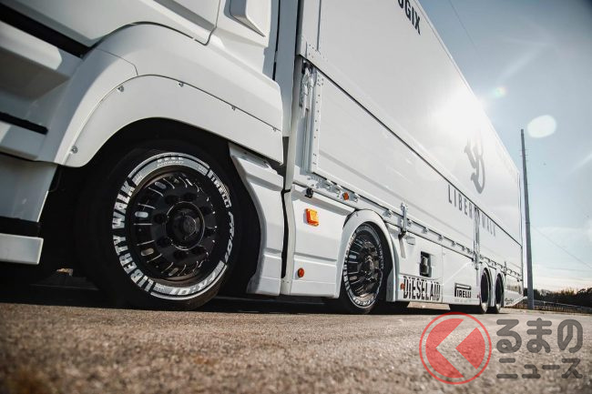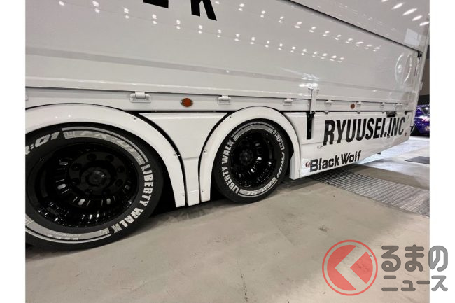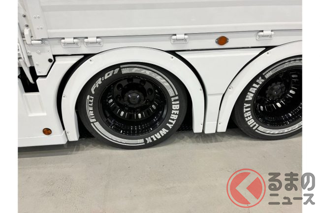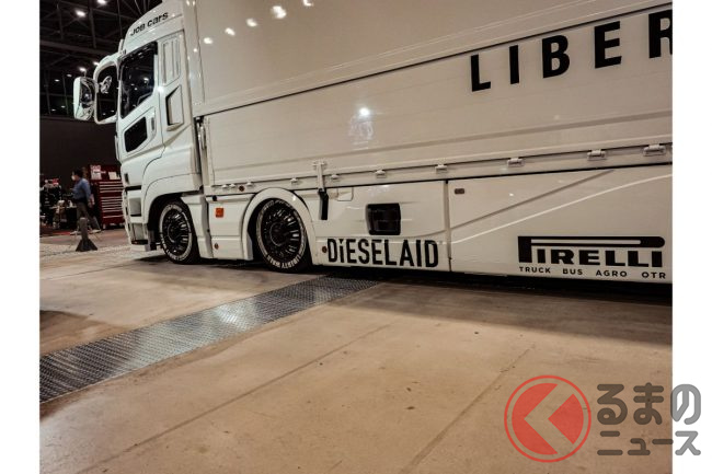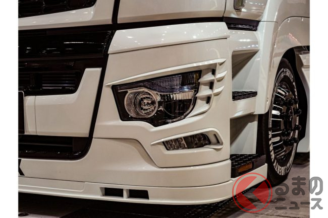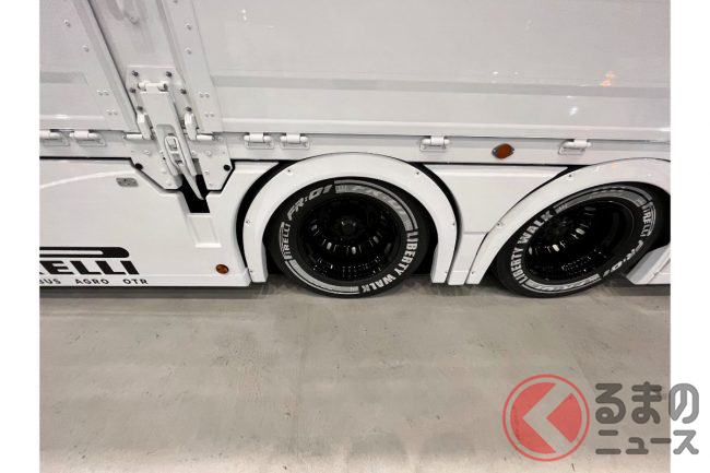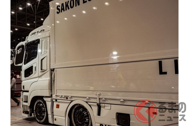 まさかの“地上高ベタベタ”「大型トラック」登場!? ド迫力ワイドフェンダー装備の三菱ふそう「スーパーグレート」がスゴすぎる