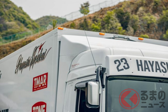 特にこだわりを感じられるのは、トラックの“顔”の部分。ベースのふそうトラックにフロントマスクを1段追加しているほか、リップスポイラー、フロントバイザー、ワイパーガードなどが装備され、通常より迫力が増され、“カッコ良く”なっています。