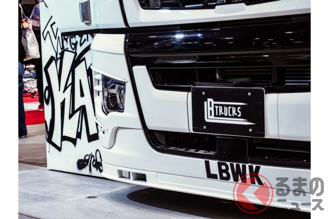 今回、同社が出展した車両のなかに、LB TRUCKSという商用車とは思えない程ド派手なカスタムが施された大型トラックがありました。