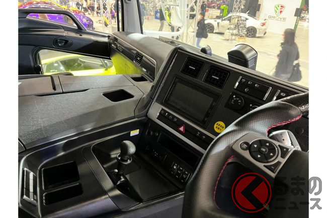 さらに、ルーフにもルーフエアリフレクターが装備され、もはやトラックとは思えないただならぬ雰囲気を漂わせています。