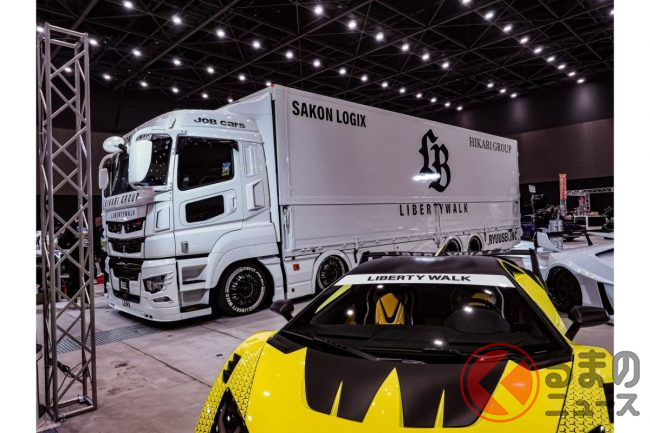 2023年3月11日から12日にかけて行われたカスタムカーイベント「名古屋オートフェスティバル2023」で、リバティーウォークは、大型トラック「Super Great(スーパーグレート)」をド派手にカスタムした「LB TRUCKS」を出展しました。どのようなクルマなのでしょうか。
