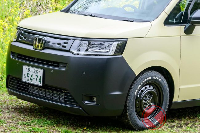 また足元は、通常は設定されていないホンダの純正スチールホイールに、ヨコハマのSUVタイヤ「ジオランダー」を装着し、タフ感を高めました。