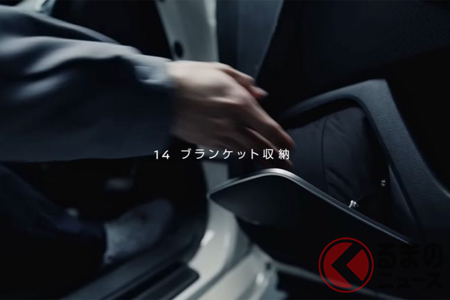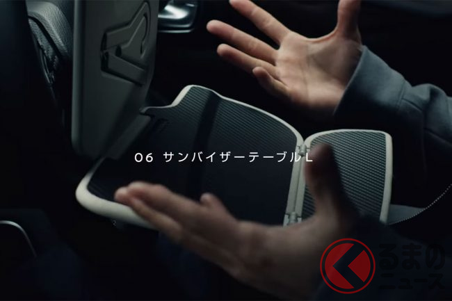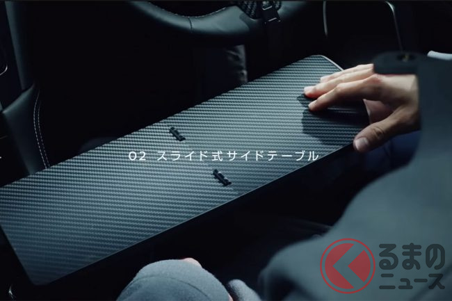 例えば、スライド式サイドテーブルやサンバイザーテーブルなどの「食べる」仕掛け、自動リクライニングシートや折りたたみフットレスト、フルフラットベッドなど「寝る」仕掛け、さらに屋外シアタースクリーン・プロジェクターなどの「遊ぶ」仕掛けなどを装備していることが特徴です。
