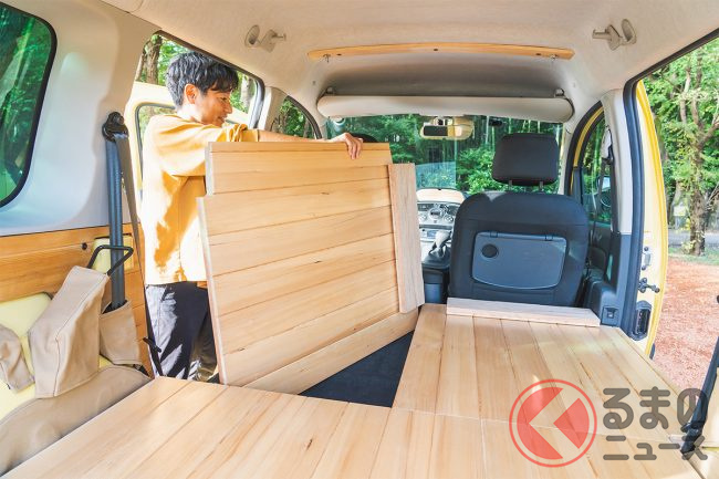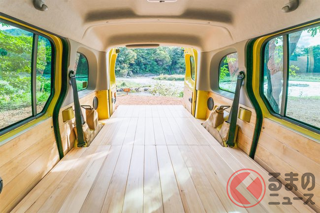 オシャすぎ! 無垢ウッド内装の「車中泊」カー誕生! スライドドアのハイトワゴンベースで「普段使い」もイケる「YURT(ユルト)」とは