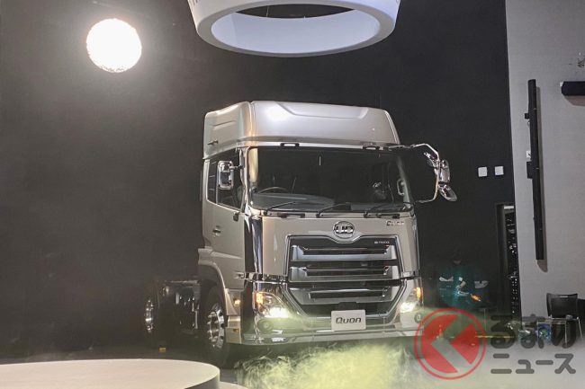 いすゞとUDトラックスは、共同開発した新型トラクタヘッドの「ギガ」と「クオン」を2023年3月29日に初公開しました。