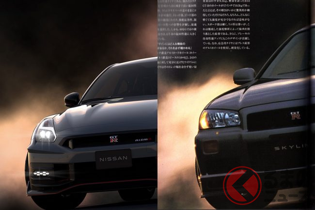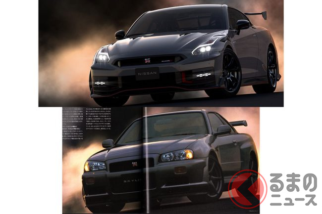そんなGT-R 2024モデルですが、東京オートサロンでの初披露と同時に日産が公開した公式写真について、当初SNSでは歴代スカイラインGT-Rのカタログの雰囲気と類似していると一部のGT-Rファンが話題にしていました。