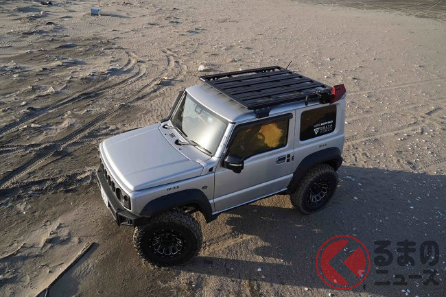 “45分”でスズキ「ジムニー」のゴツ感強調!? わずか7cmで“うすうす”もカンタン取付可能なルーフラック新製品登場 約17万円