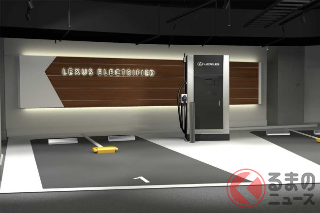 レクサスのEVユーザー専用の予約可能な充電ステーションを、2030年までに商業施設などを中心とする全国100箇所を目標に設置。