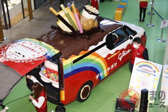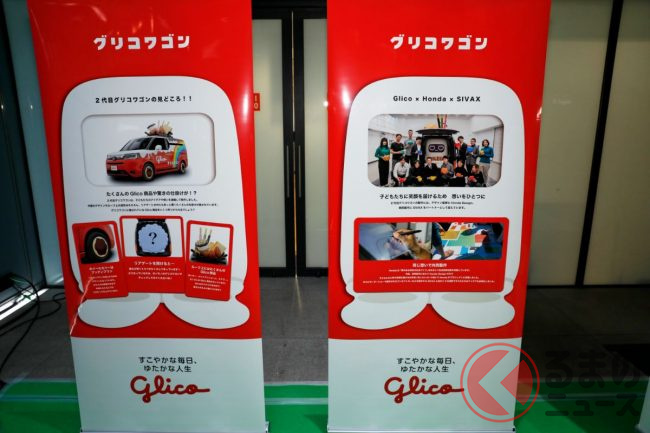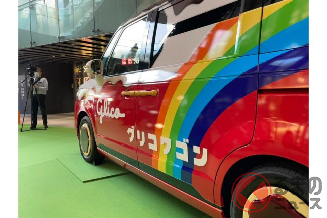 2023年3月30日、江崎グリコ(以下、グリコ)は、ホンダや自動車の開発支援を手掛けるシバックスと共同で製作した新型「グリコワゴン」を初公開しました。グリコワゴンは本モデルで2代目だといいます。