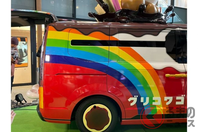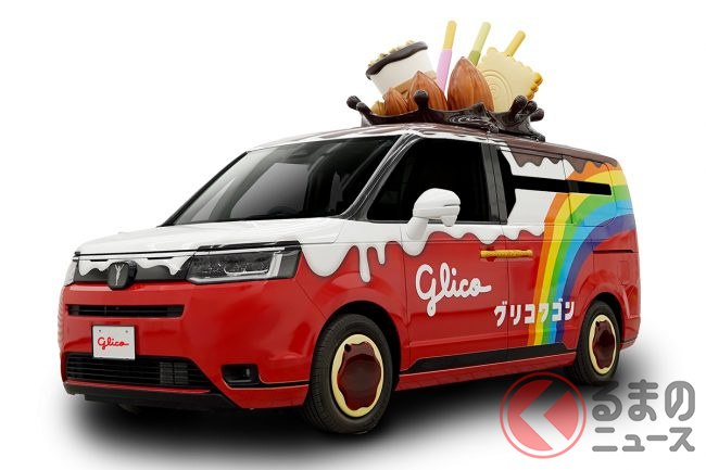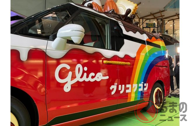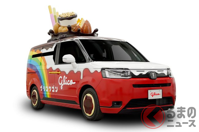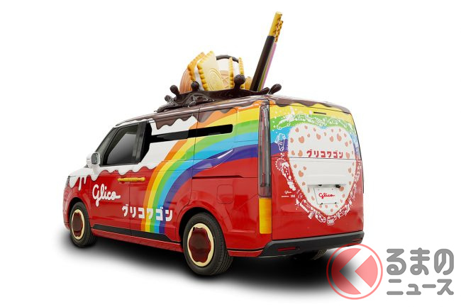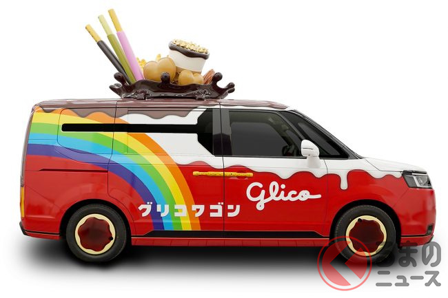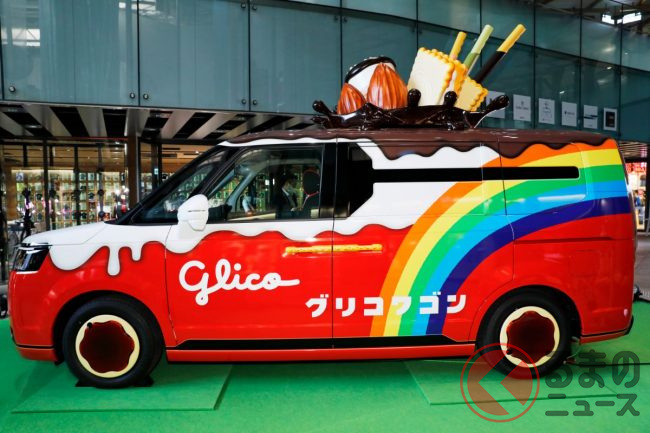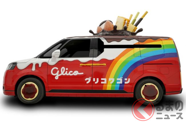 2023年3月30日、グリコは、2代目の新型「グリコワゴン」を初公開しました。グリコがホンダや自動車の開発支援を手掛けるシバックスと共同で製作した車両で、たくさんのお菓子があしらわれたミニバンのようですが、どのようなクルマなのでしょうか。