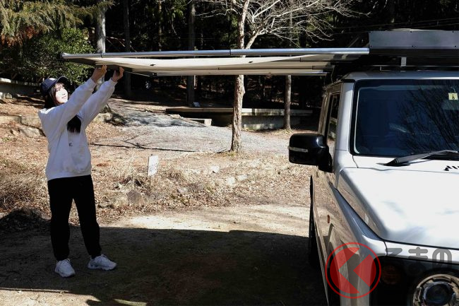 タイニーハイドアウトであれば、アウトドアに出かける際にも毎回テントやタープなどを積載する必要がなく、いつでもどこでもルーフテントとサイドオーニングを展開でき、車中泊やキャンプへ気軽に出かけられるようになるといいます。