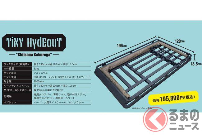 この商品は、通常のルーフラック同様に荷物を運ぶことが可能なうえ、ルーフテントやサイドオーニング、さらにラダーを格納。まさに「全部入り」といえるルーフラックで、さらに2023年春には同じコンセプトのもとに開発した新機種を発売する予定だといいます。