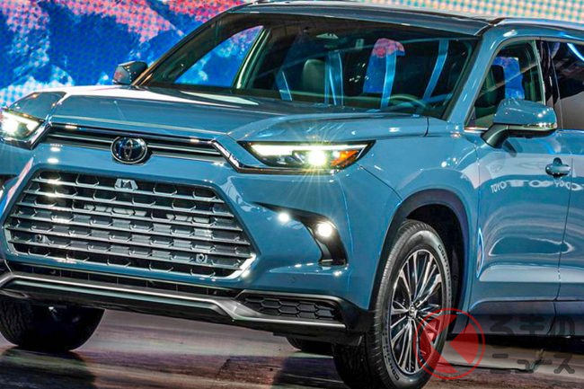 トヨタ新型「史上最強SUV」“今夏”に登場か? タフ顔の“8人乗り3列SUV”「グランドハイランダー」米で追加情報発表へ