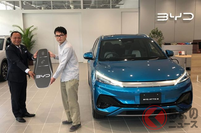 中国のEVメーカーであるBYDが日本に上陸し、第1弾となる「ATTO 3」の納車式がおこなわれました。同車を購入したオーナーに、中国車を選んだ理由を聞いてみました。