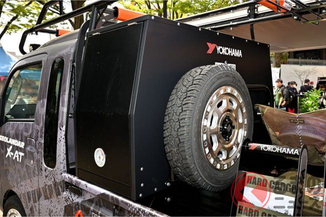 前出のハードカーゴは、有限会社エフクラスが展開する軽バン・軽トラック用カスタムパーツブランド。今回アウトドアデイジャパン東京では、横浜ゴムのブースに同社のカスタムパーツを取り付けたアトレーとハイゼットトラックが展示されました。