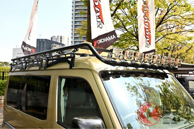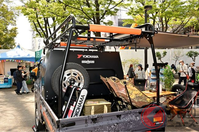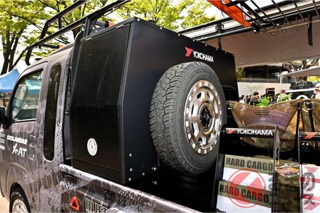 2023年4月1日から2日まで、東京・代々木公園イベント広場で開催された「アウトドアデイジャパン東京」で、横浜ゴムが出展したブースの中にカスタムパーツメーカー「ハードカーゴ」のカスタムカーが展示されていました。