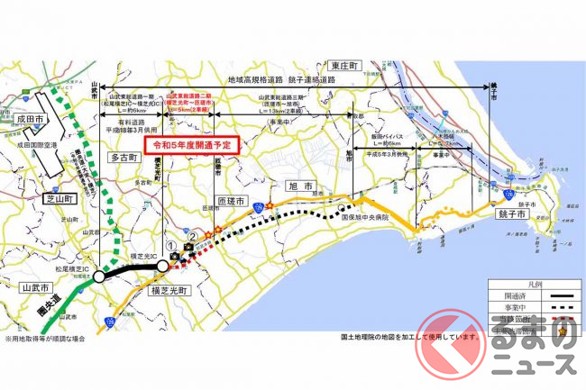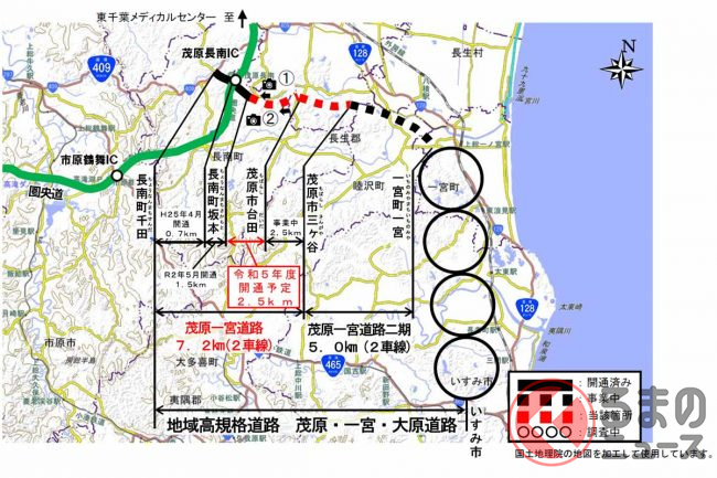 圏央道から外房を目指す茂原一宮道路が、2023年度に延伸する予定です。