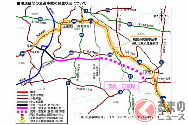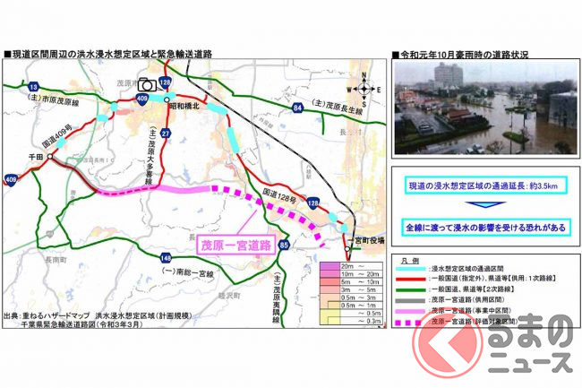 並行する現道(国道409号・128号)の混雑を緩和するとともに、圏央道の茂原長南ICと接続し、首都圏と外房地域の連携を強化する役割を担います。