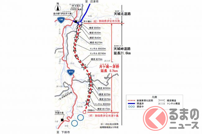 伊豆縦貫道の「天城越え計画」峠手前までが本格始動! 近付く「浄蓮の滝」 月ケ瀬~茅野が新規事業化