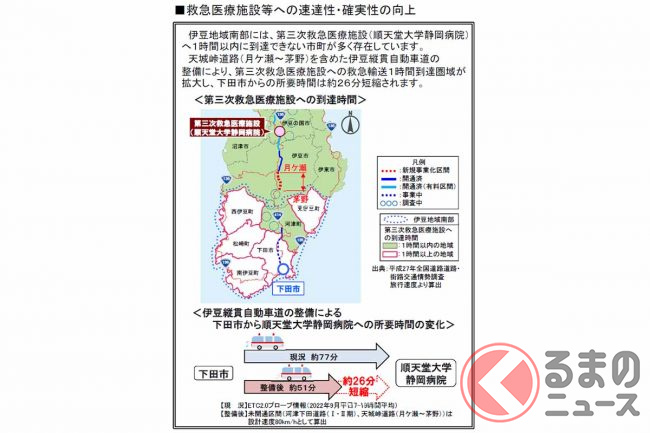 このほか沼津河川国道事務所は、整備効果として救急搬送時間の短縮、災害時の迂回路確保などが期待されるといいます。