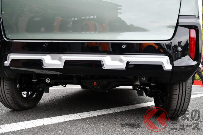 新型デリカミニの4WDは、2WDモデルのタイヤサイズ(165/55R15)に対し大径なタイヤ(165/60R15)を装着するとともに、160mmの最低地上高を確保しています。また4WD車専用に開発された前後ショックアブソーバーも装着されているのも特長です。