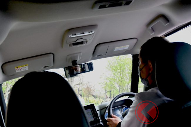 また、新型デリカミニの座面と背もたれ部分に使われている立体3Dパターンの撥水シート生地と身体とのフィット感がとても優れており、大きく傾いた状態でもシートベルトを装着していれば身体がずり落ちることがなく、リアシートのホールド性の良さも体験できました。