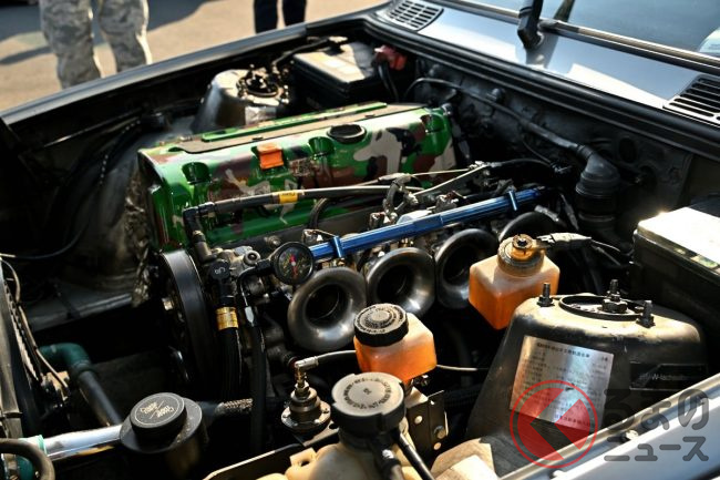 置きのイベント専用に仕上げたクルマですが、日常使用からときにこのままでキャンプにも行くというからまたまたびっくりします。