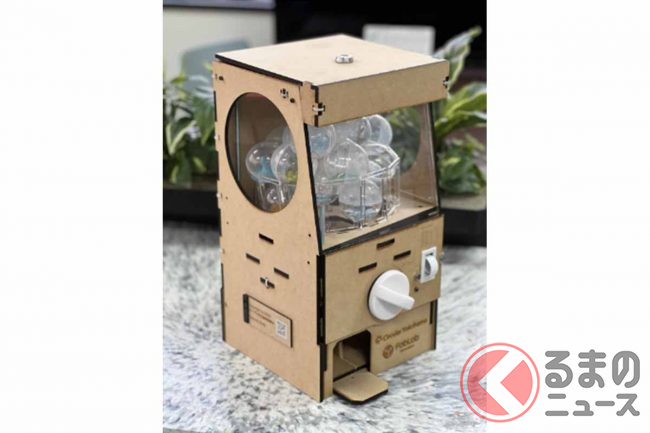 ペットボトルキャップをアップサイクルして作ったキーホルダーやコマなどが景品として入っており、楽しみながらアップサイクルや分別の体験ができるといいます。