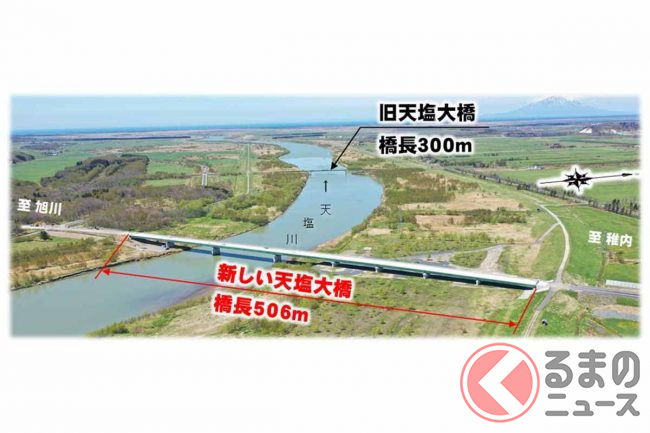 2008年に事業化、2010年に工事着手され、新しい天塩大橋は2020年10月に開通しています。
