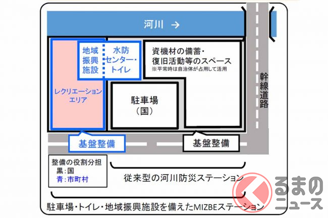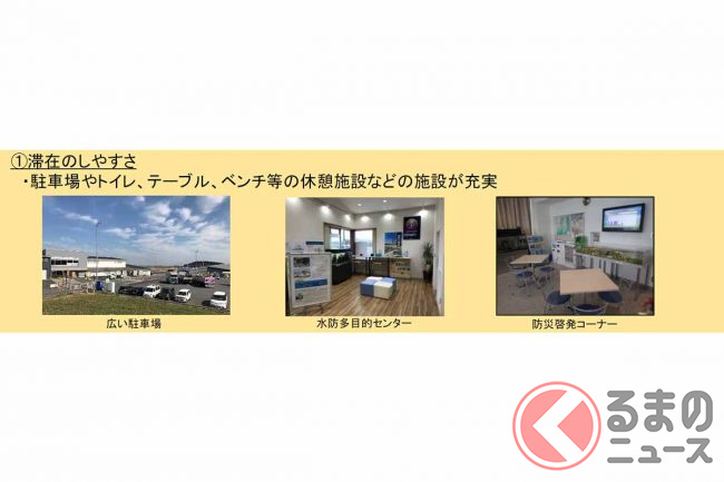 MIZBEステーションは、駐車場や休憩施設、地域連携施設がある点は道の駅と同様ですが、“災害時”に重点を置いているのが特徴です。