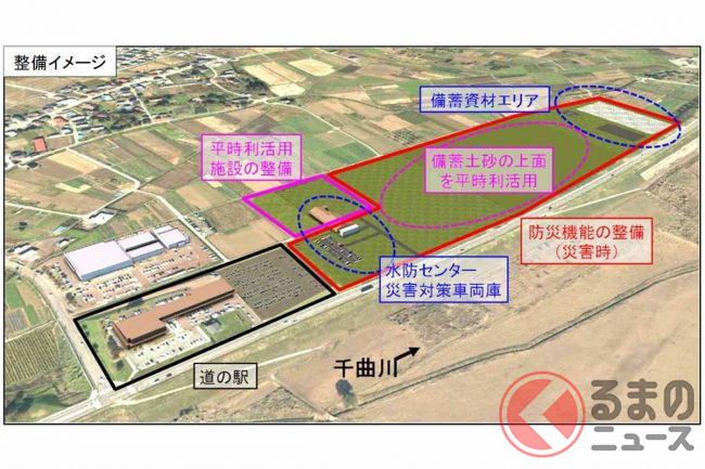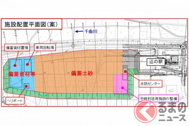 一方で国土交通省は根固めブロックなどの復旧用資材の備蓄、ヘリポートなどの整備を進め、災害時は緊急復旧活動や水防活動の拠点となります。