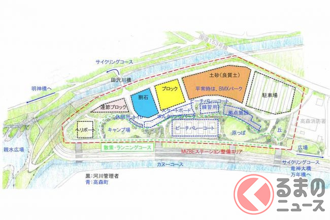 例えば「山吹地区MIZBEステーション」は、平時は高森町が整備するレストランやキャンプ場、カヌー、ビーチバレー、スケートボード、サイクリングなどのスポーツの活動拠点として、地域活性化や賑わいの創出が期待されています。