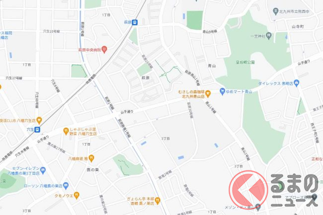 山手通りは八幡東区から八幡西区にかけて国道3号の南側を並行して走ります。