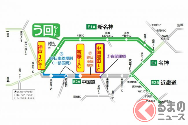 中国道「吹田JCT~神戸JCT」GWは“一部除き”車線規制解除 中国池田ICは19夜間閉鎖 詳細日程明らかに