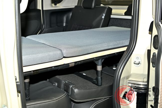 そこで東京オートサロン2023では、このシートアレンジの上に載せる専用ベッドキットが三菱ブースで参考出品されていました。