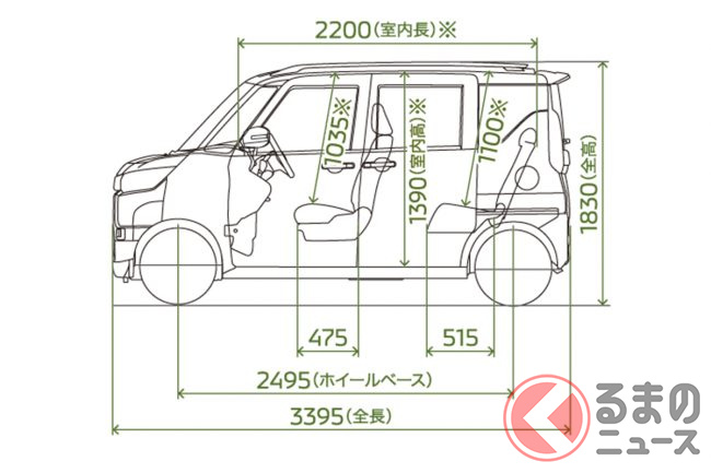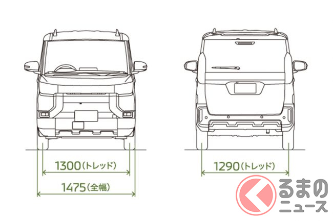 そんな新型デリカミニのボディサイズは、全長3395mm×全幅1475mm×全高1830mm(4WD)で、ホイールベースは2495mmです。