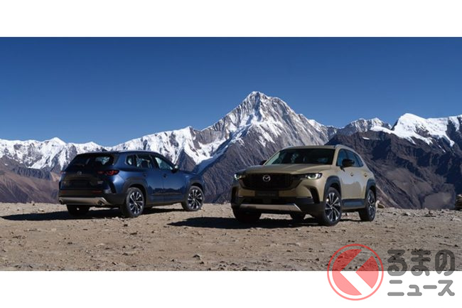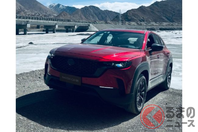 マツダ「新型アウトドアSUV」の“HVモデル”世界初公開へ! ワイドボディのタフ顔! 新型「CX-50」中国導入間近