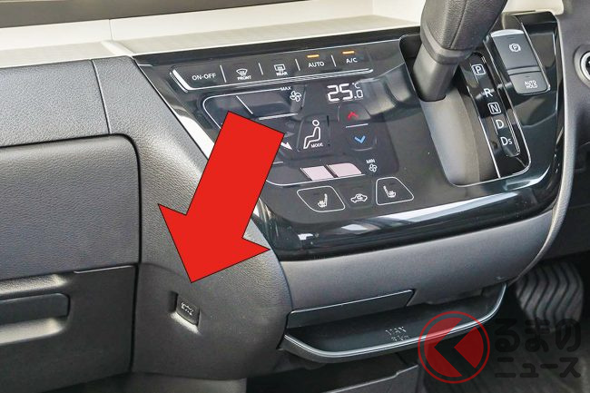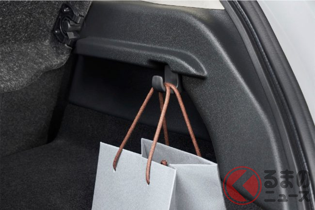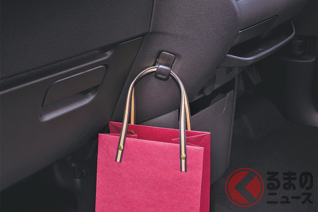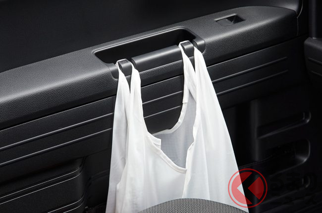また珍しいものでは、ホンダの軽商用バン「N-VAN」は助手席ドア内側の取っ手部分に2つの切込みが入り、ここにコンビニ袋が引っかけられるよう工夫されているケースもあります。