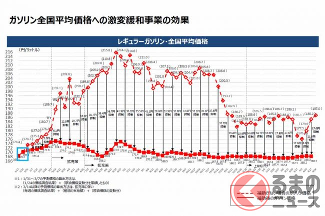 ガソリン9週ぶり値下がり レギュラー平均168.2円 一方で「補助金なし価格」は値上がり続く