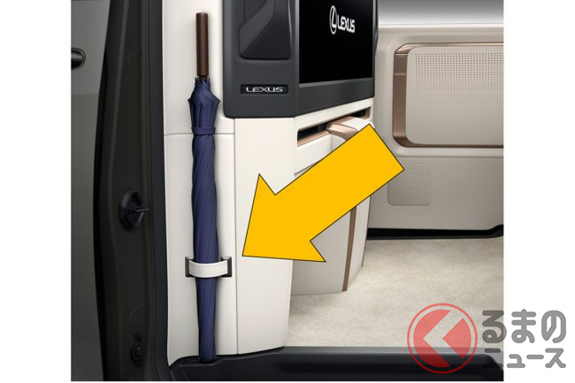 レクサス新型高級ミニバン「LM」日本発売へ 後席の「VIP」に向けた「気遣い装備」を設定? 地味だけど役立ちそうな「傘立て」とは