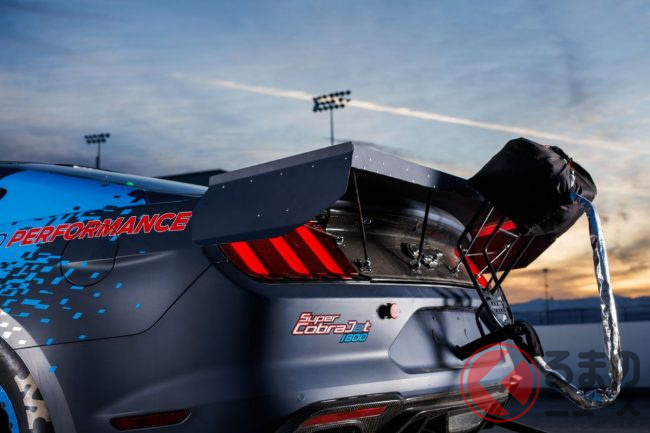 2023年4月13日、アメリカの自動車メーカー「フォード」は、最大1800馬力を出力する「マスタング・スーパーコブラジェット1800」のプロトタイプを発表しました。この車両で、電気自動車におけるドラッグレースの世界記録更新を目指すといいます。