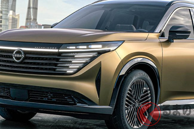全長5m超え必至! 日産が「新型3列SUV」を世界初公開! ド迫力顔はグローバル展開も? 新型「パスファインダー」を語った