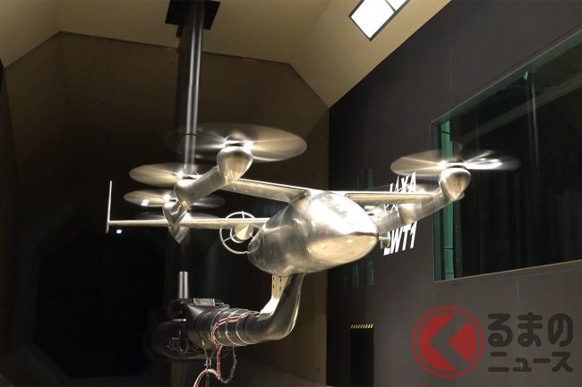 12基のモータープロペラが搭載され、最大巡航速度(対気速度)は100km/h、実運用航続距離は5-10kmといいます。