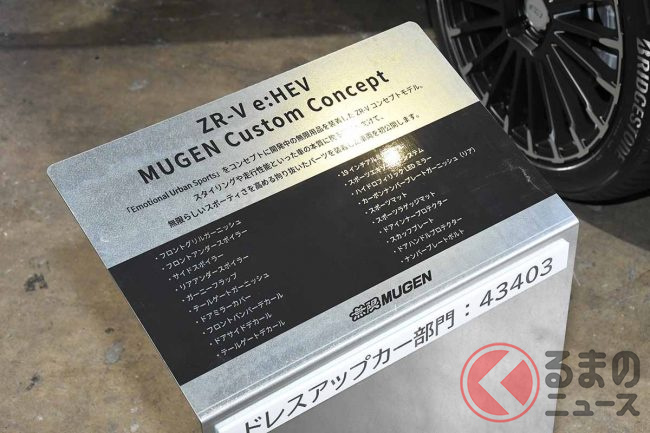 ホンダ車のカスタマイズパーツを手掛ける「無限」は、新型SUV「ZR-V」用に開発した各種パーツを発表しました。どのようなパーツがラインナップされたのでしょうか。