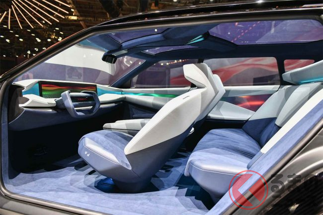 CMF-EVプラットフォーム採用によって低重心化されるとともに、自動調光できるサンルーフやピラーレス構造による開放的で広々とした室内空間を提供します。