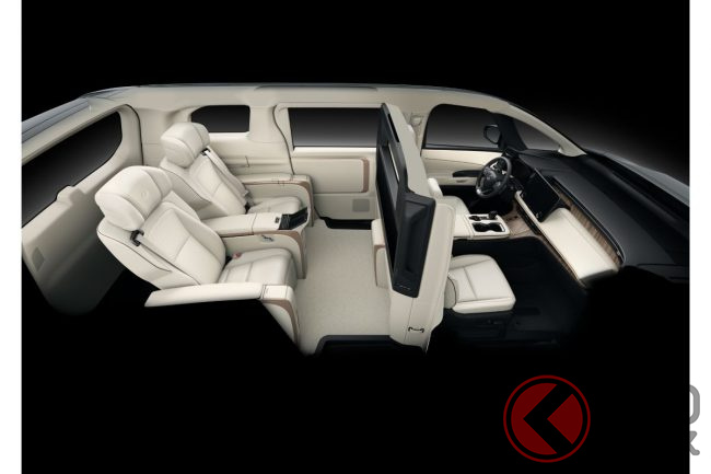 2列4人乗り仕様は、リヤ席前方に48インチ大型ライドディスプレイを備えたパーティションを配置するほか、ディスプレイ下部に冷蔵庫や収納スペースが設けられるなど、リムジンのような豪華な装備となっています。