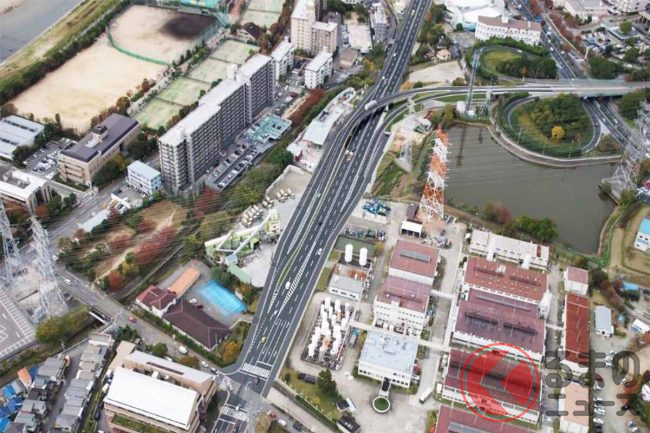 6月上旬頃には高速から県道尼崎方面への出口が、7月中旬頃には県道尼崎方面から高速への入口が、それぞれ新ランプに切り替わります。これにより県道接続部は平面交差から立体交差に変わる予定です。