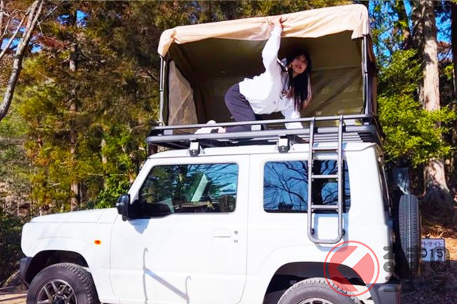 「ジムニー」&「ハイエース」専用の「斬新ルーフラック」登場! ルーフテントやオーニング搭載した「アウトドア最強」アイテム