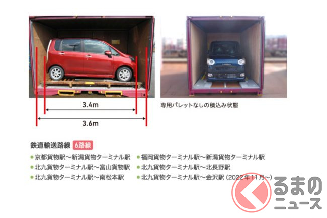 え? 貨物列車で「軽」新車輸送!? コンテナに積まれた「ムーヴ」「eK」がなぜかカワイイ! どうやって運ぶ?